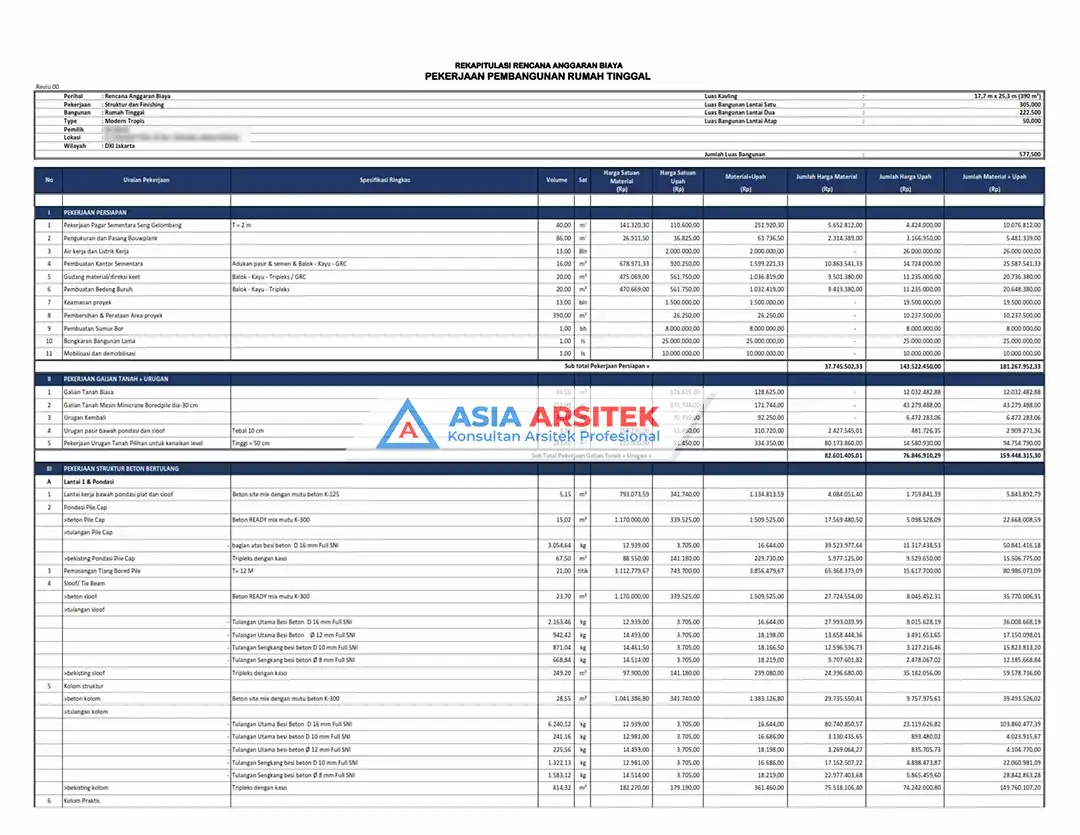 Pastikan Anda berdiskusi dengan kontraktor untuk mendapatkan perhitungan biaya yang lebih akurat.